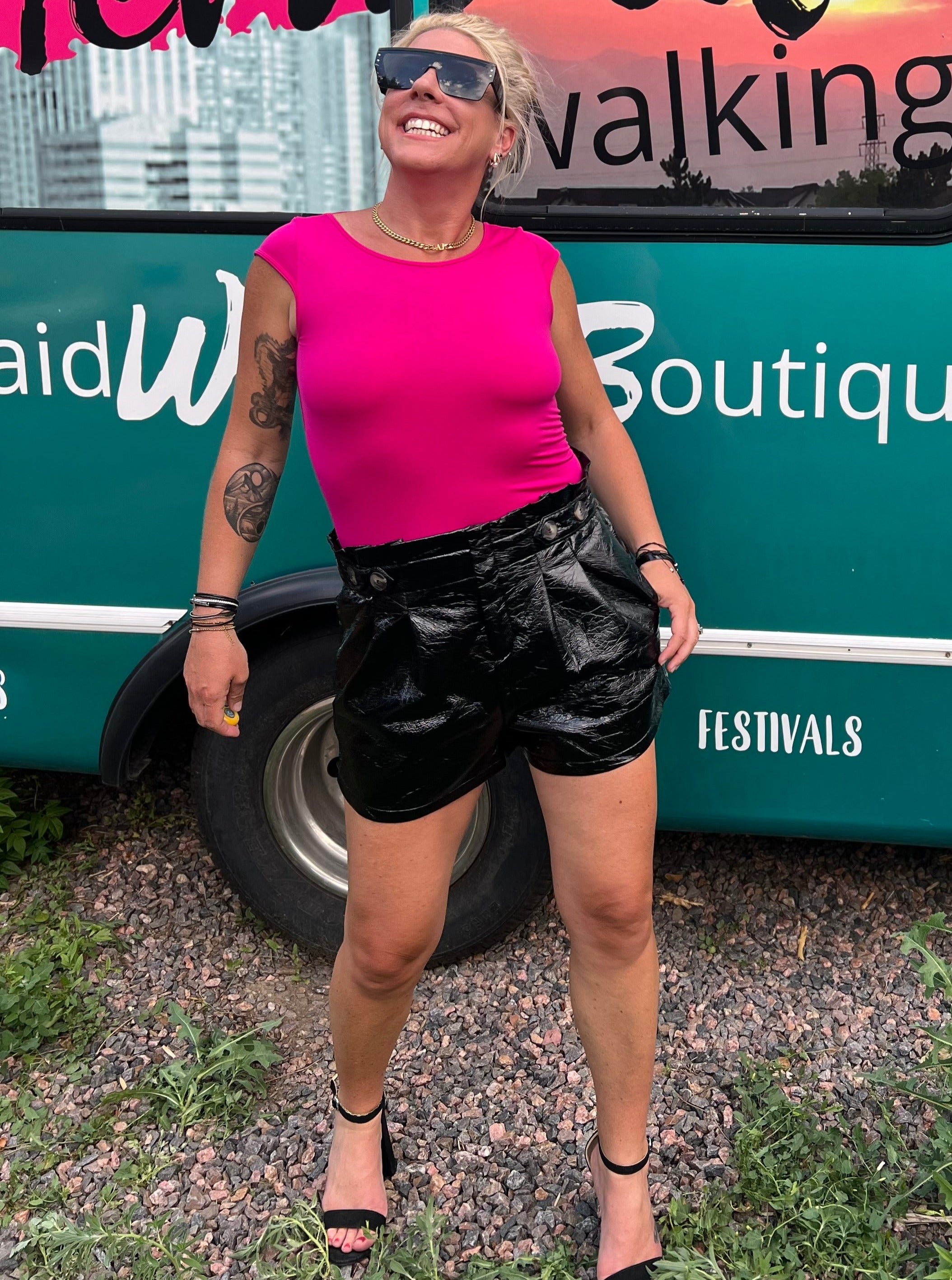 • Vibrant fuchsia pink color, soft, and extremely stretchy fabric. 92% Nylon and 8% Spandex