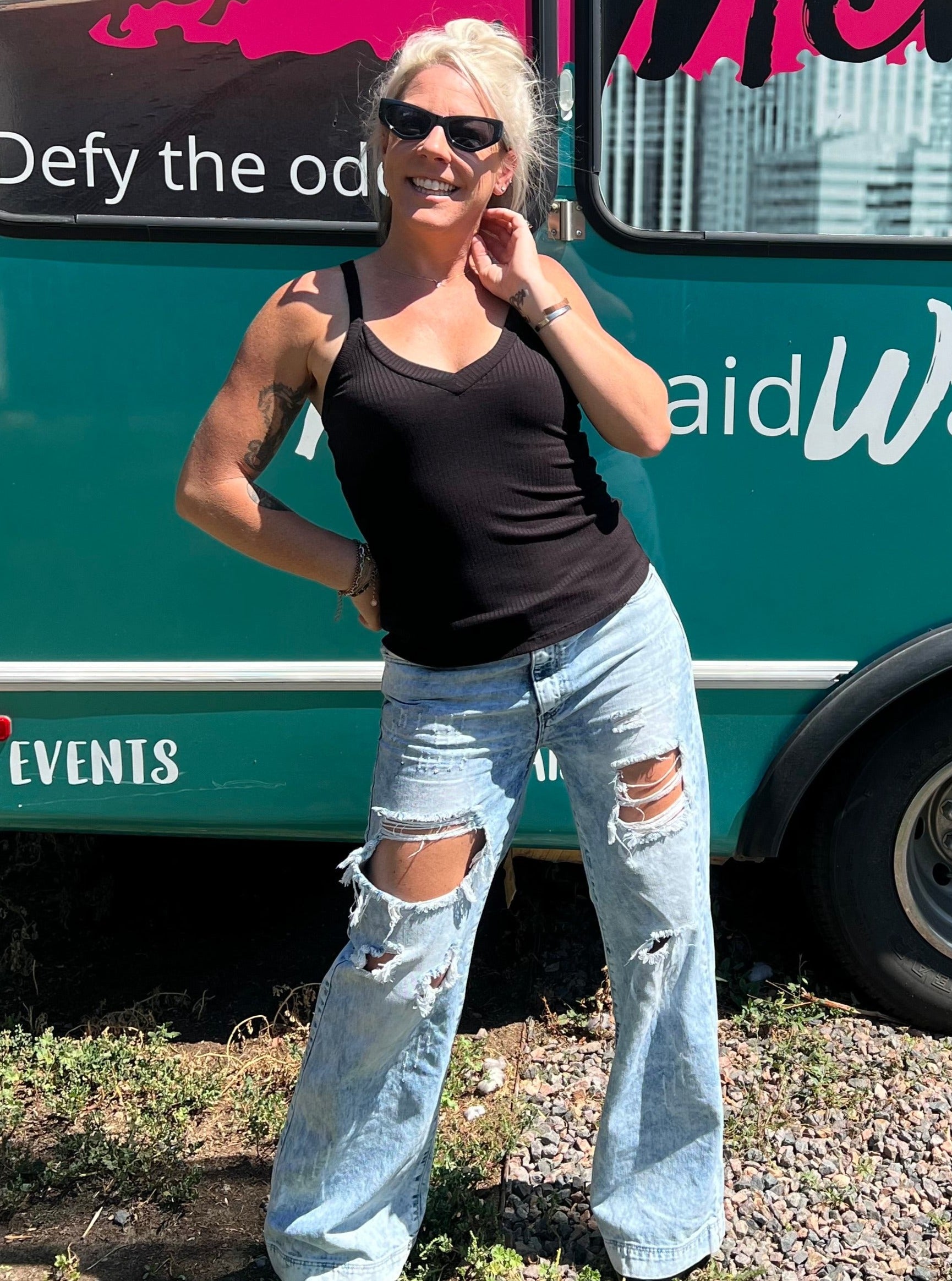 This is Ali Joy, the owner and currator of MWB. She tries on every style to ensure quality and make sure we can give as many fit details as possible.