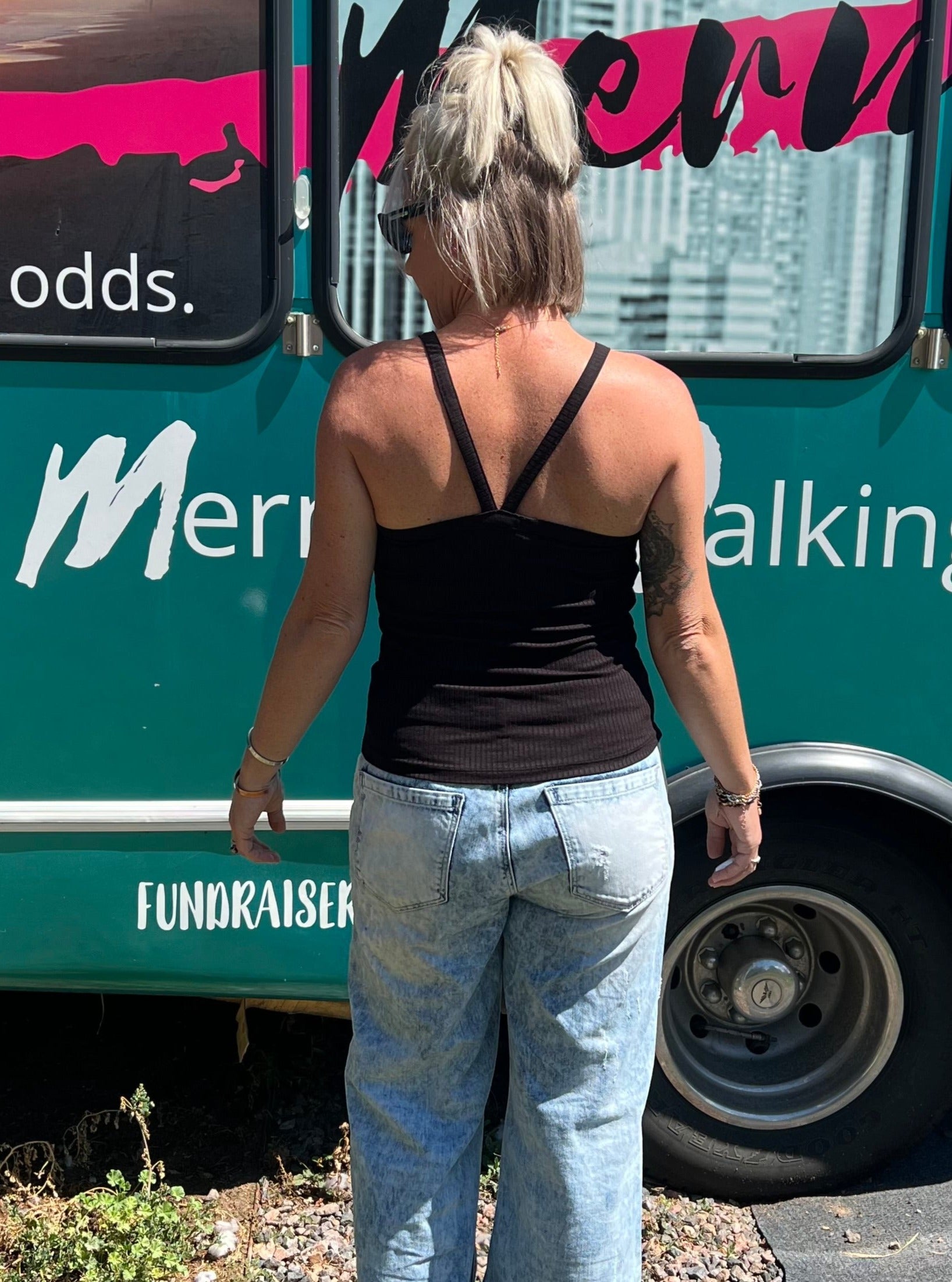 • Unique straps take this top beyond basic and also keeps straps from falling off your shoulders.