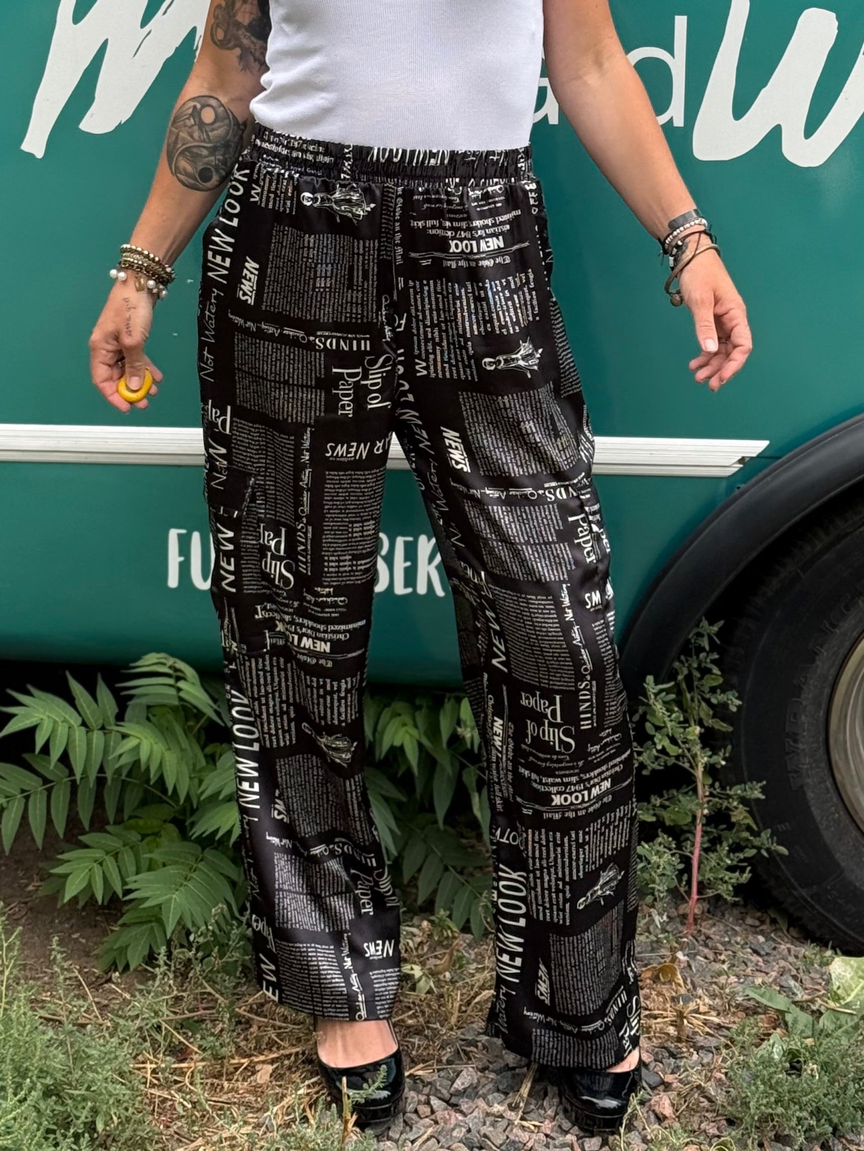 Newspaper Cargo Pants in Black