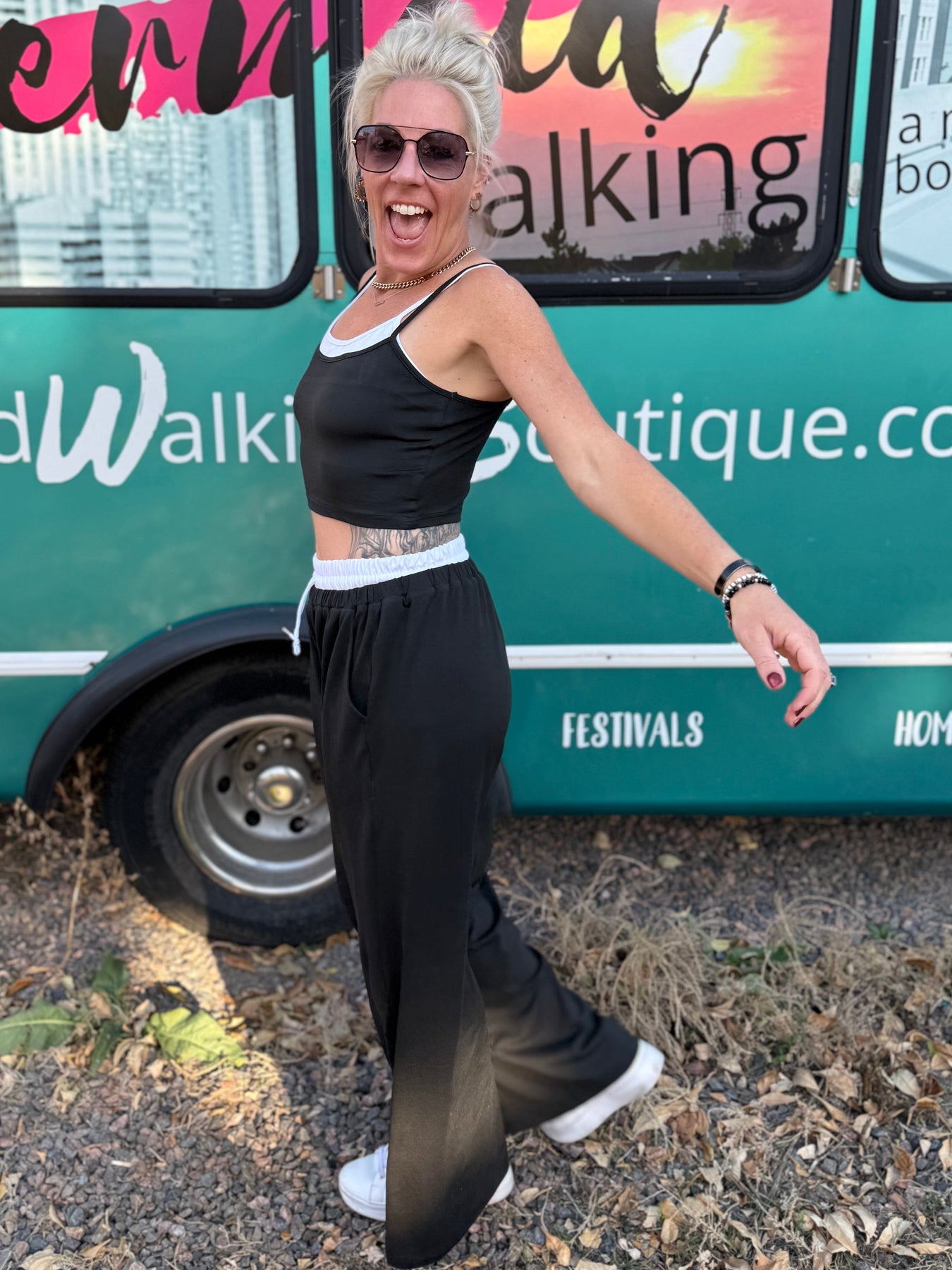The Corrine Set in Black is where comfort meets confidence. This two-piece dream features a cropped cami and wide-leg pants trimmed with contrast white — a bold twist on a classic silhouette. Whether you’re lounging in luxury, layering for the season, or owning the holiday hustle, Corrine was made for the woman who knows how to balance ease with edge.