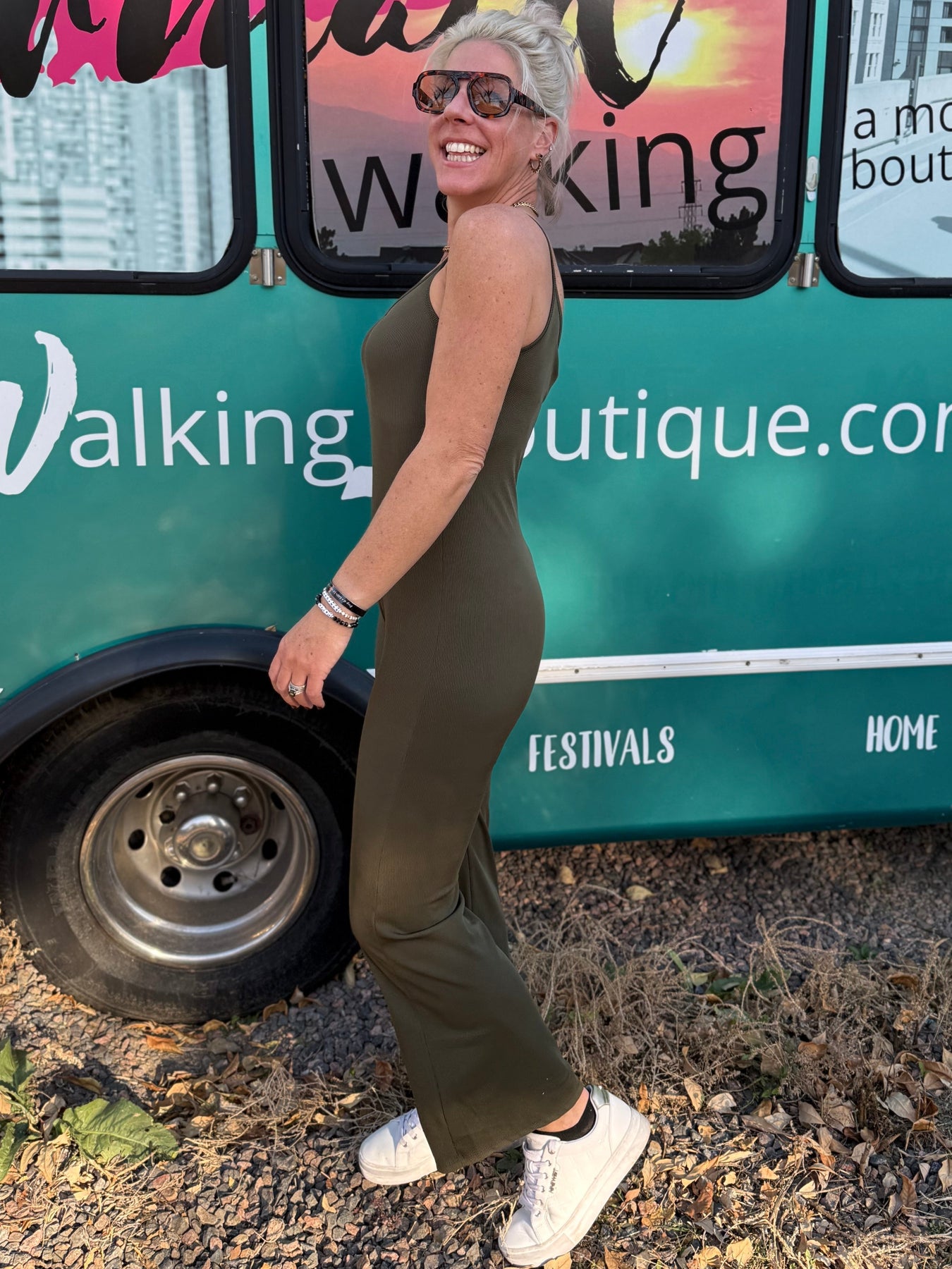 The Olivia Onesie Jumpsuit in Olive is that sleek, second-skin piece that brings confidence to every curve and ease to every move. With a soft ribbed texture, flattering silhouette, and endless styling potential, this one-and-done outfit is your shortcut to feeling put-together, powerful, and unapologetically you. Whether you’re layering it up for the season or rocking it solo, Olivia is here to help you embody your next-level energy — no hesitation, no holding back.