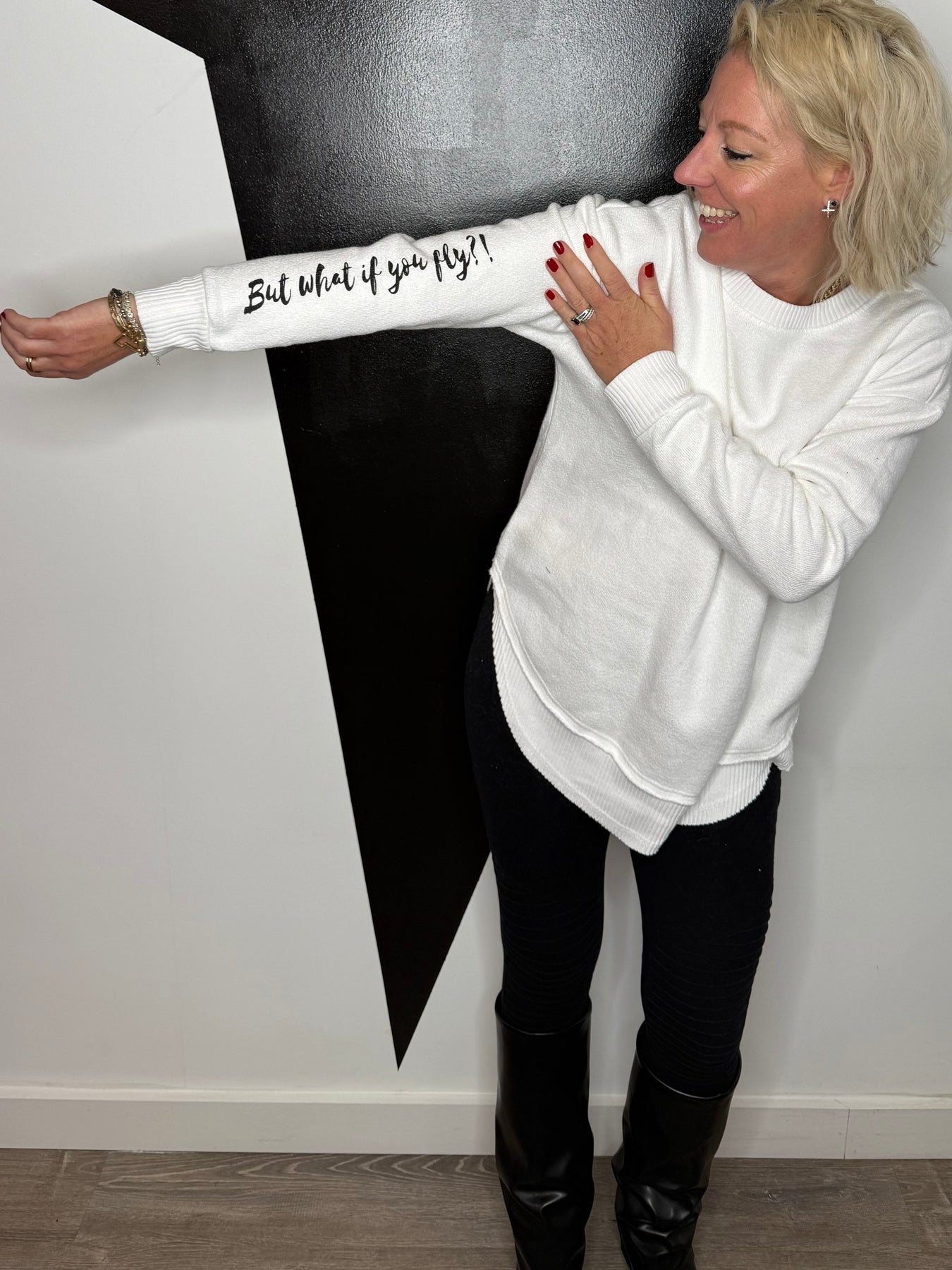 The You Fly Pullover in White is soft, inspiring, and quietly bold—designed for women who are ready to trust themselves enough to leap.