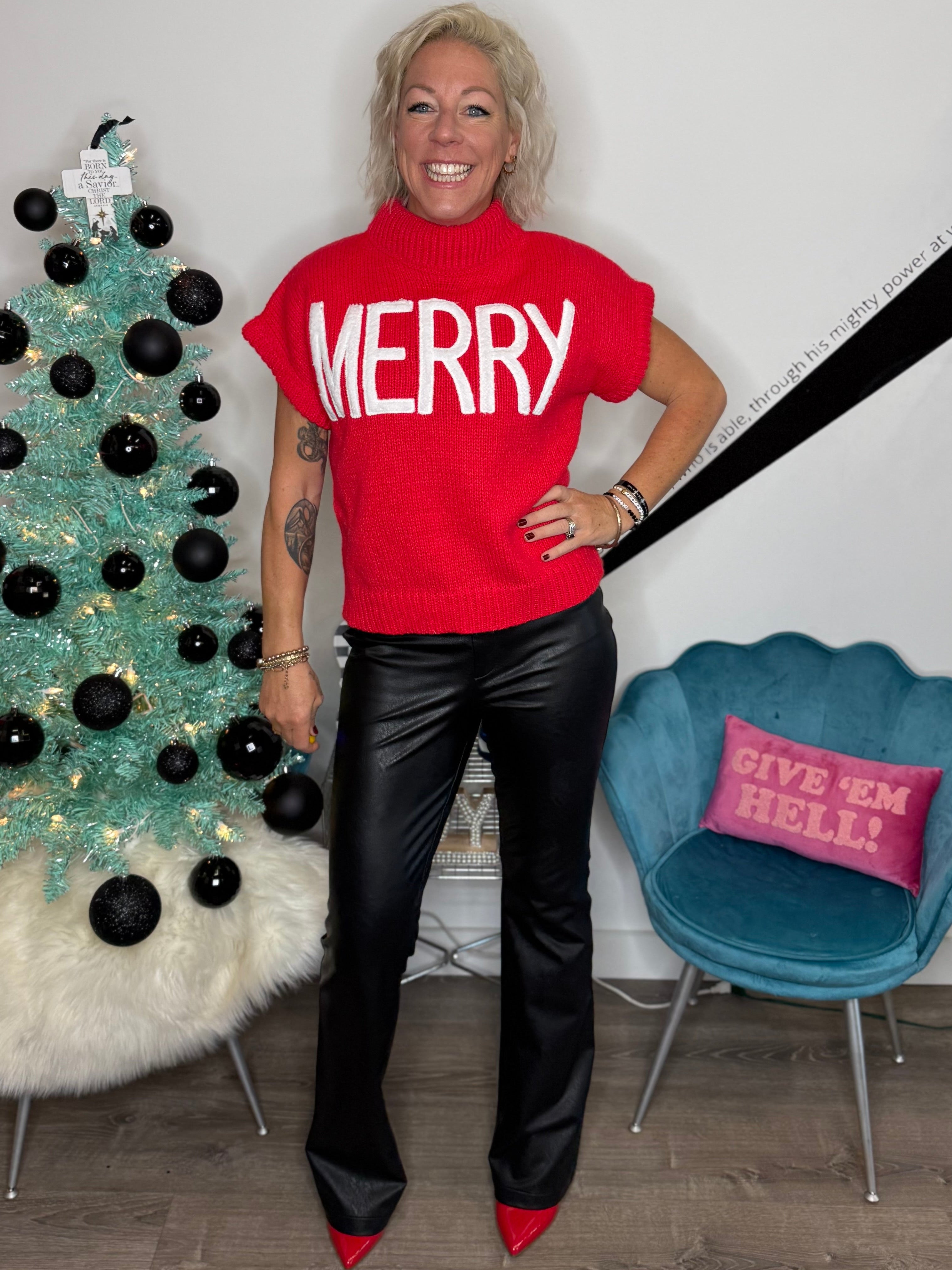 Merry Short Sleeve Sweater in Red