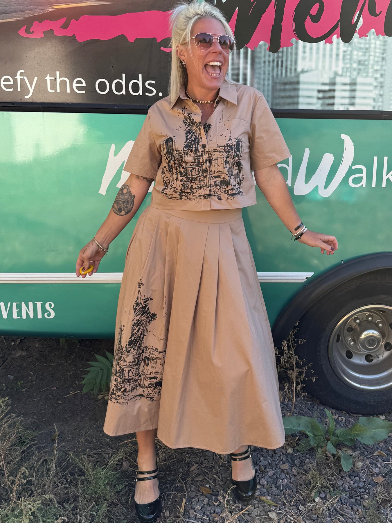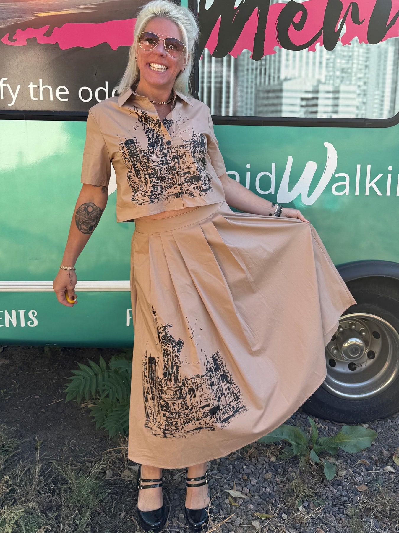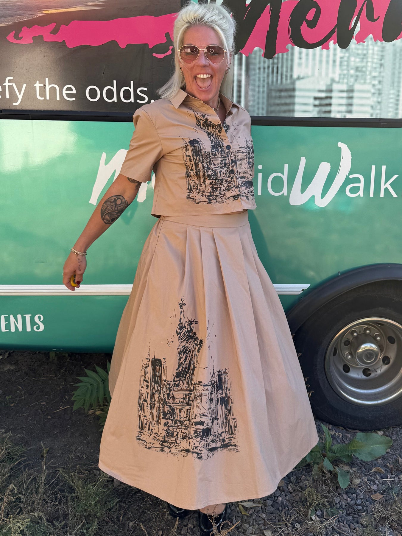 Own the moment with the NYC Skirt, a statement silhouette that captures the energy and edge of the Ascend Collection. This isn’t your average midi — it’s a masterpiece in motion. With architectural pleats and an abstract cityscape design, it’s made for the woman ready to rise higher, walk taller, and move boldly into her next season.