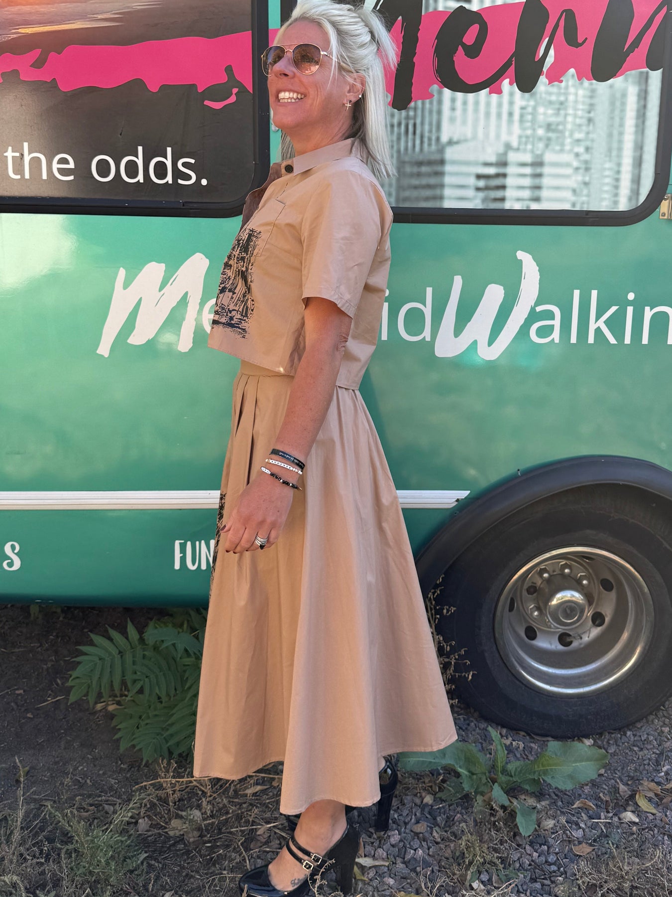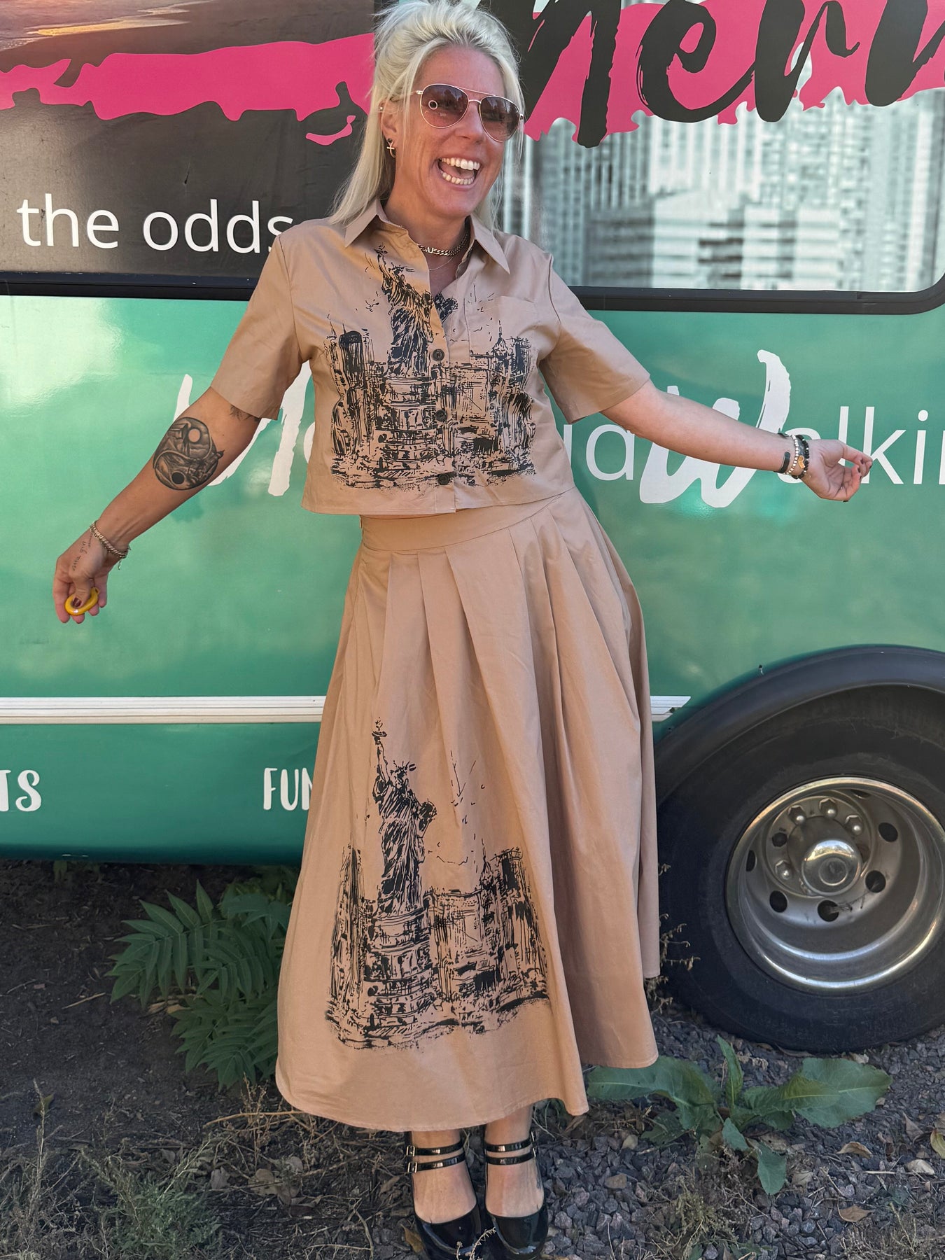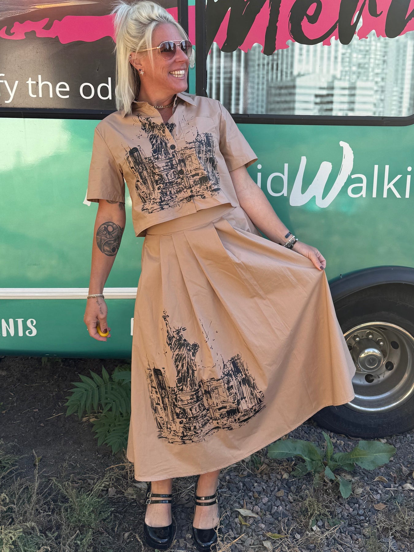Own the moment with the NYC Skirt, a statement silhouette that captures the energy and edge of the Ascend Collection. This isn’t your average midi — it’s a masterpiece in motion. With architectural pleats and an abstract cityscape design, it’s made for the woman ready to rise higher, walk taller, and move boldly into her next season.