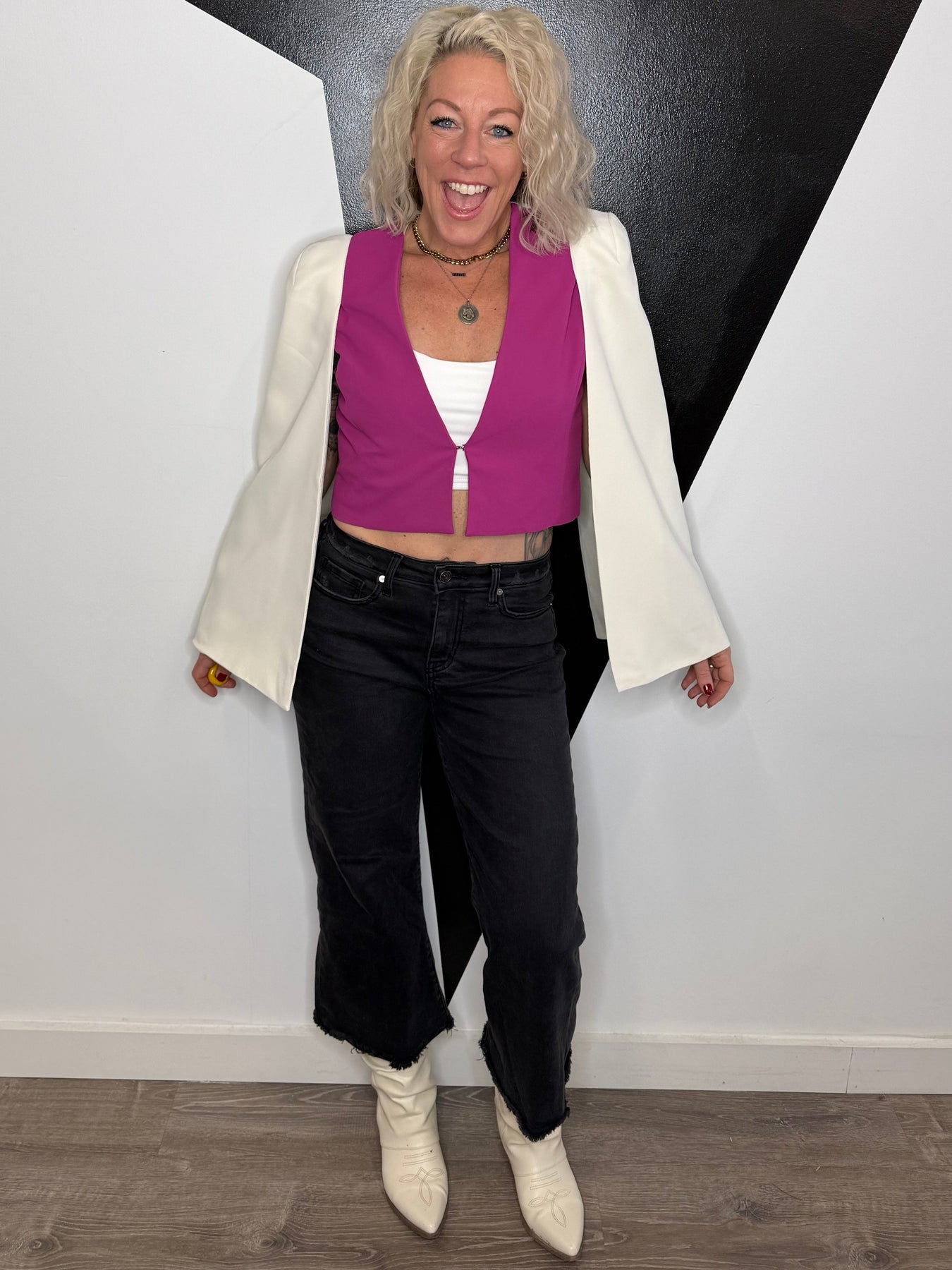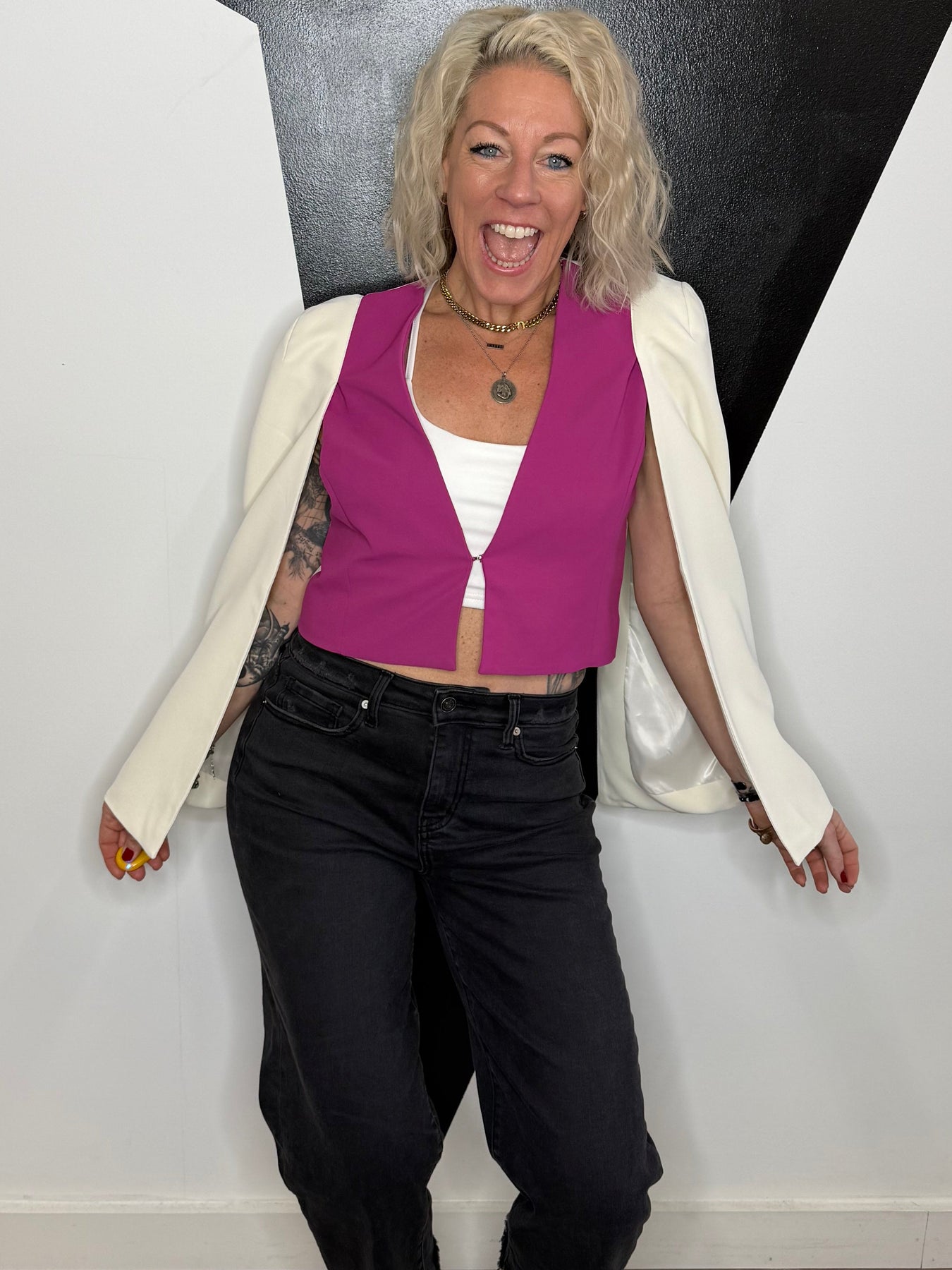 • Layer it with a sleek bodysuit and wide-leg trousers for boss energy