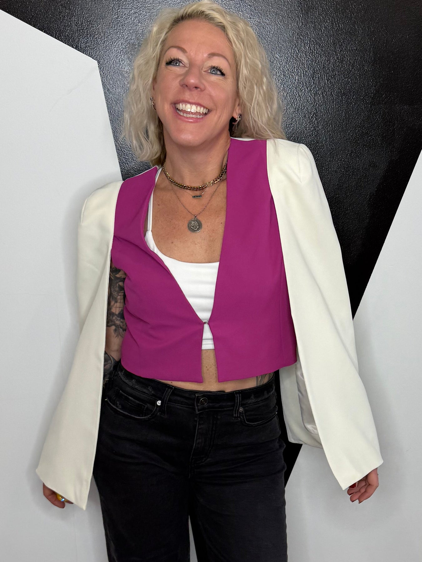 • Lightweight structure that layers beautifully over tanks, bodysuits, and fitted tops