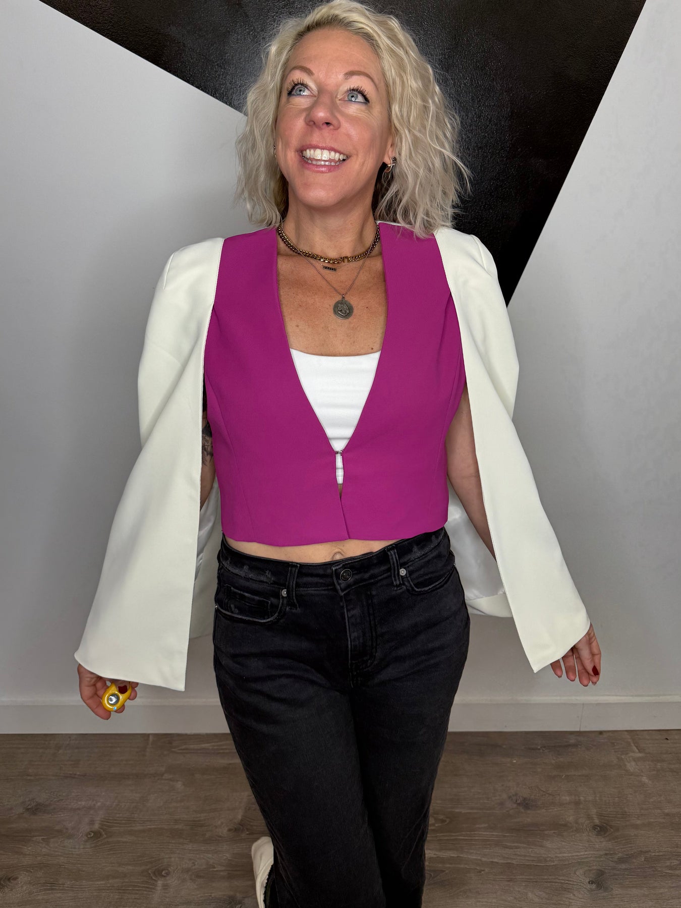 The Cassian Cape Cloak Crop Jacket is what happens when bold femininity meets fearless forward motion. With its dramatic cape-style sleeves and cropped silhouette, this piece doesn’t just finish an outfit—it declares something.